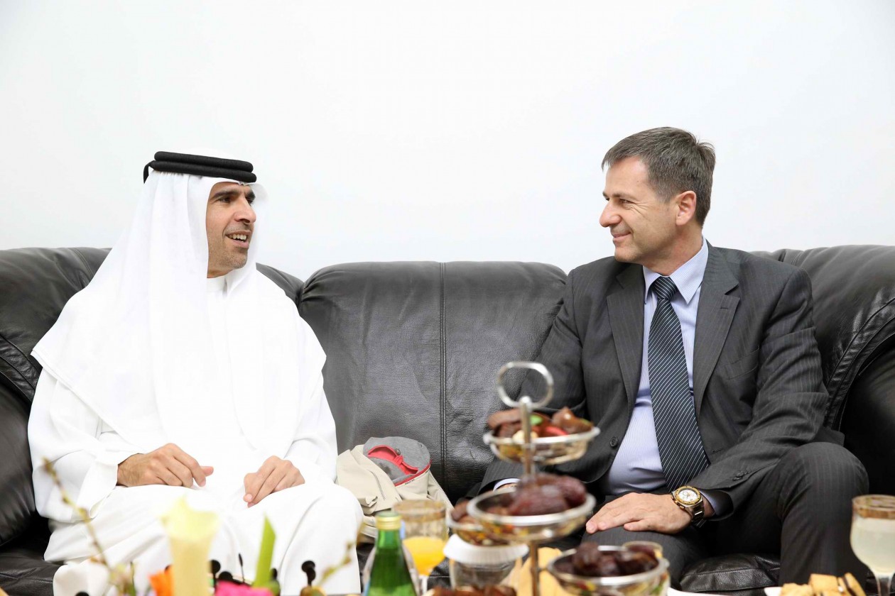 Pictured is Julphar Chairman, Sheikh Faisal bin Saqr Al Qassimi with the head of the delegation and Vice President of the Chamber, Rasa Ristivojevic.